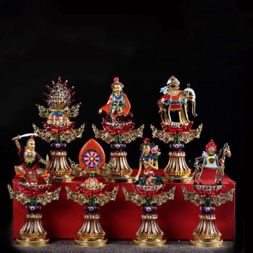 Tương truyền, chúng đại biểu cho sự cát tường trong vũ trụ khi Chuyển Luân Vương giáng thế. Ngài dựa vào bảy loại pháp bảo này có thể hàng phục ma chướng, chinh phục tất cả, là người thống trị thế tục và tinh thần.