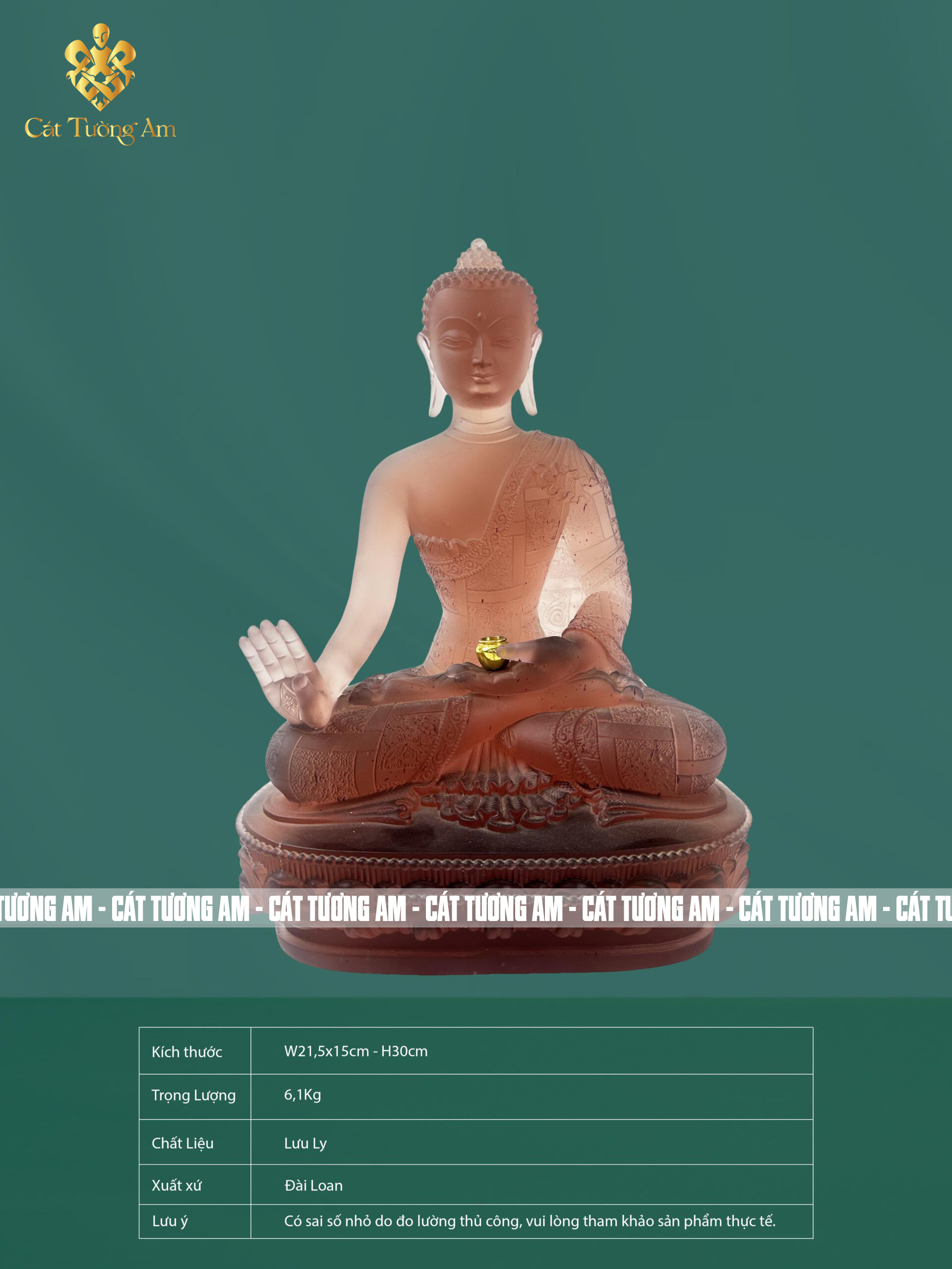 Tượng Dược Sư lưu ly được chế tác từ lưu ly – loại đá quý có màu xanh ngọc trong suốt, đại diện cho ánh sáng trí tuệ. Với kích thước 30cm, tượng là lựa chọn lý tưởng để trưng bày tại gia hoặc chùa chiền, giúp gia tăng không gian thanh tịnh và linh thiêng.